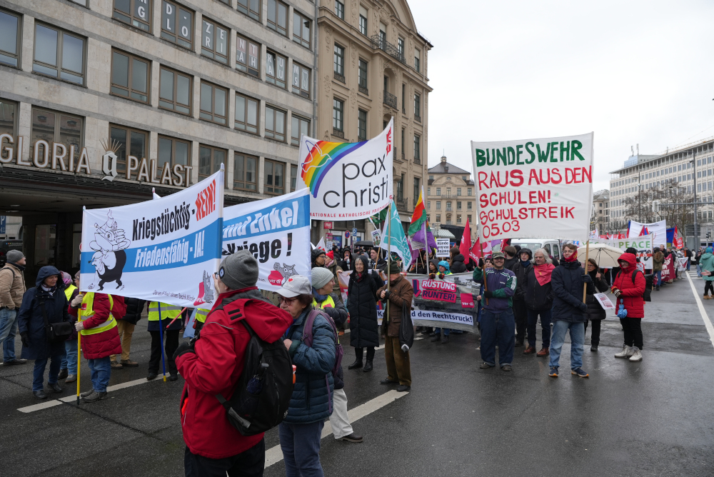 Laut Polizeiangaben nahmen etwa 2.000 Menschen an der Demonstration gegen die Sicherheitskonferenz teil – trotz zahlreicher Parallelveranstaltungen in München. Dazu zählten unter anderem eine Großkundgebung von 250.000 Iraner:innen auf der Theresienwiese, eine Prüfungsdemo, eine Ukraine-Demonstration sowie eine Friedensdemo von Corona-Gegner:innen.Kritisch wurde jedoch angemerkt, dass die traditionelle Friedensbewegung auf der Demonstration zunehmend in den Hintergrund rückt. Stattdessen prägten Gruppen von Exilant:innen, insbesondere Palästinenser:innen, Kurd:innen und Vertreter:innen aus Rojava, das Bild der Kundgebung.