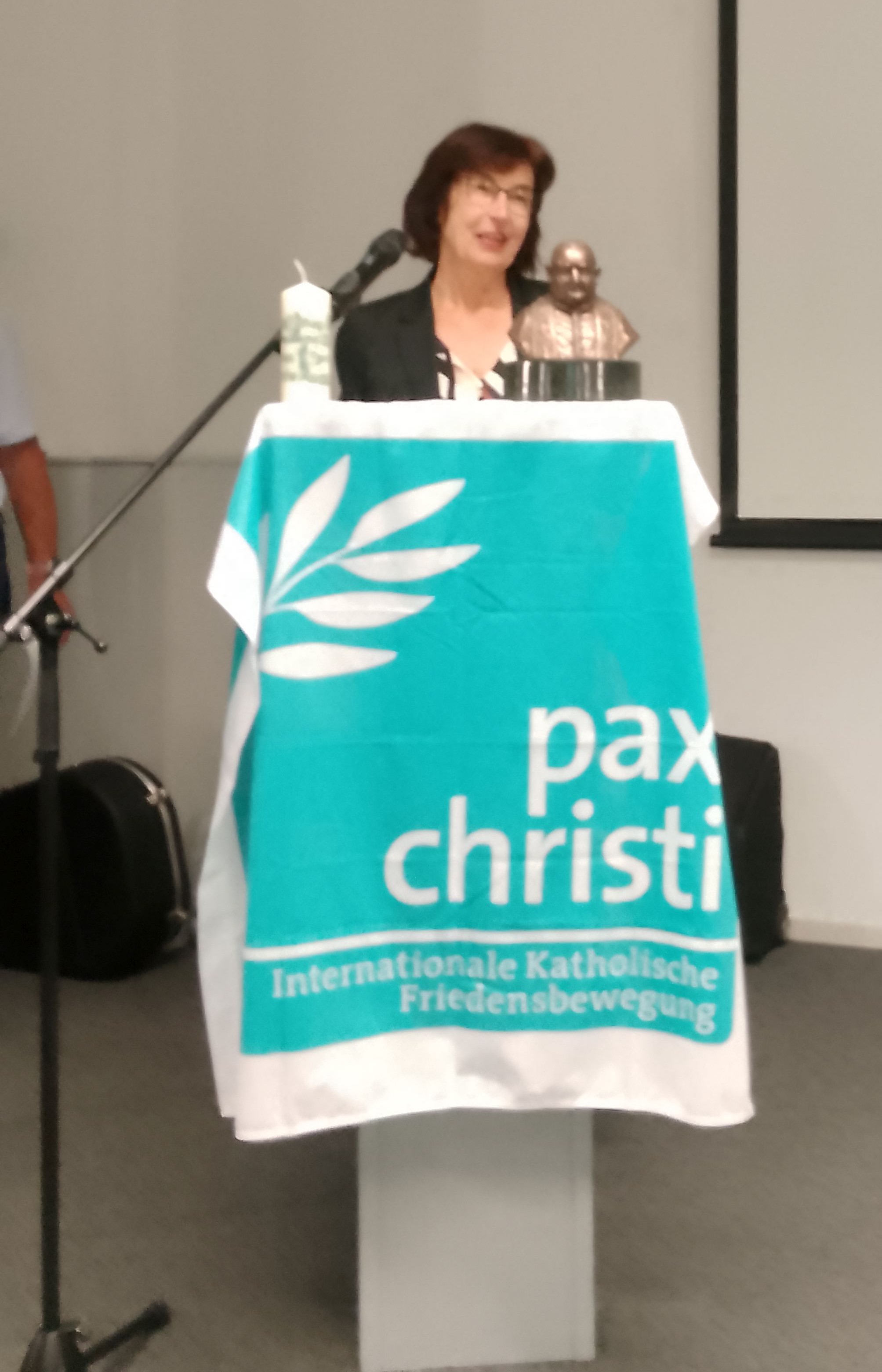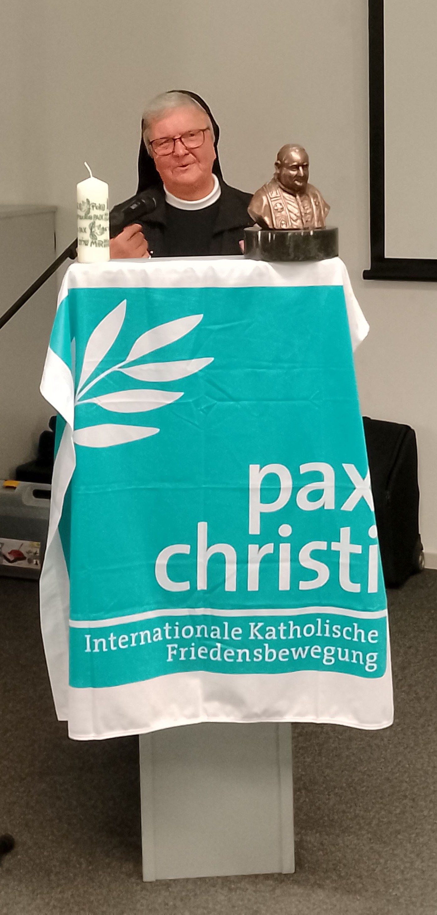 Es folgten erneut Friedenslieder, u.a. das Lied „Die Moorsoldaten“, das 1933 von Häftlingen des Konzentrationslagers Börgermoor bei Papenburg im Emsland geschrieben wurde, bevor die feierliche Preisverleihung erfolgte. Der Diözesanvorstand von pax christi Münster übergab den Preis in Form einer Büste von Papst Johannes XXIII sowie einer Urkunde an die Schwestern des Konvents.